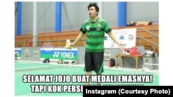Ketika atlet bulu tangkis Indonesia, Jonatan ‘Jojo’ Christie, meraih emas di nomor tunggal putra, sebuah akun Twitter yang berisi info tentang Asian Games 2018, @asiangames2k18, yang dikelola seorang netizen bernama Panji Prasa, memention mantan penyanyi dan aktor cilik Joshua Suherman, yang juga akrab disapa Jojo, dalam ucapan selamatnya.