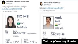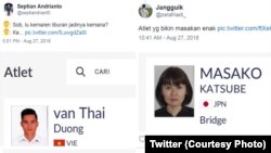 Lebih 10.000 atlet dari luar Indonesia berlaga dalam Asian Games 2018. Dari jumlah yang tidak sedikit itu, ternyata warganet Indonesia menemukan saja nama-nama atlet yang mereka anggap mirip dengan kosakata Bahasa Indonesia.
