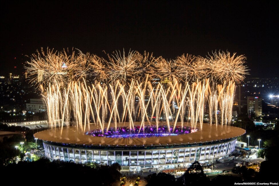 Pesta kembang api menyemarakkan Pembukaan Asian Games 2018 (Foto: Antara/INASGOC)
