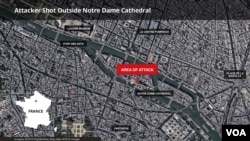 Kantor kontra-terorisme Perancis telah memulai penyelidikan terhadap serangan terhadap seorang polisi Paris hari Selasa (6/6) di Katedral Notre Dame, yang merupakan lokasi wisata terkenal.